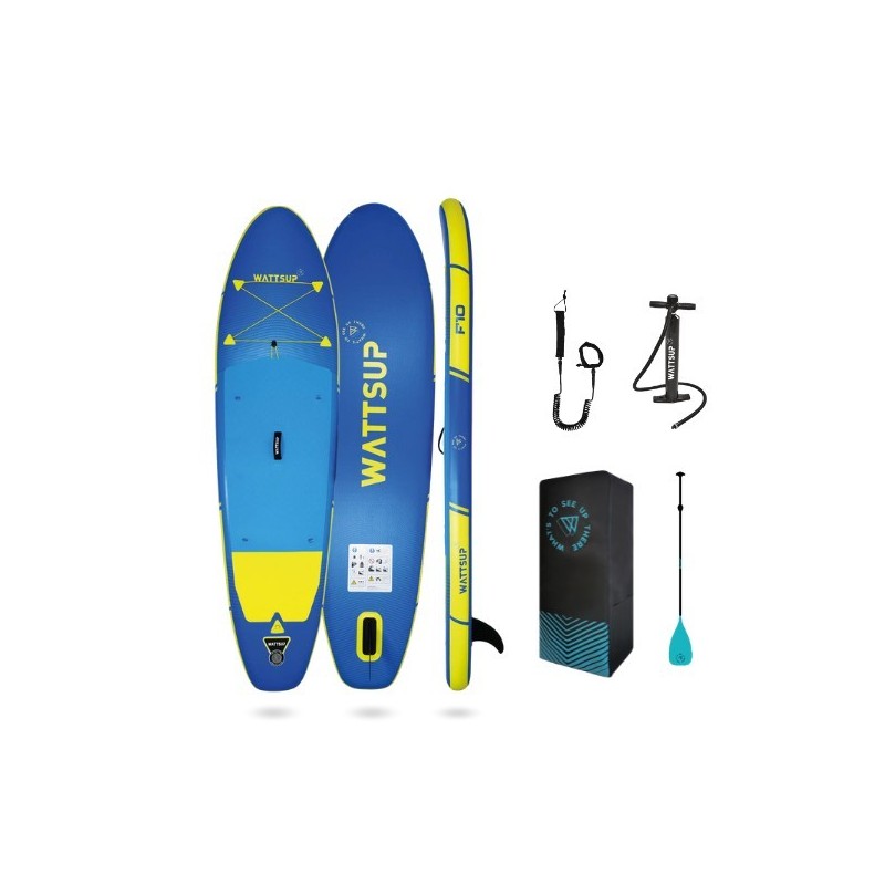 Inclus dans le pack : Sac de transport, Pagaie, Pompe HP, Kit de réparation, Leash.