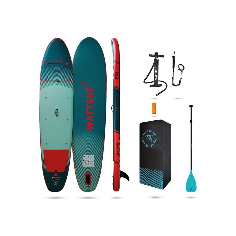 Inclus dans le pack : Sac de transport, Pagaie, Pompe HP, Kit de réparation, Leash.