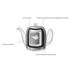 Théière en porcelaine blanc, avec filtre et couvercle en inox. Possibilité de servir jusqu'à 6 tasses. Adapté au lave-vaisselle.