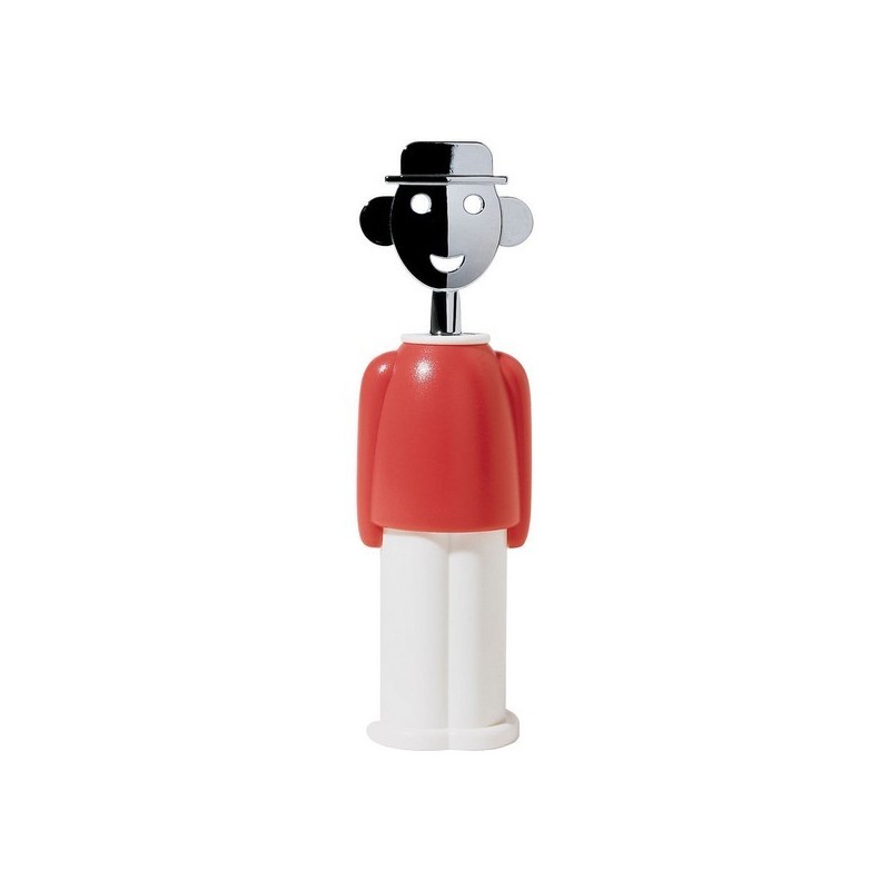 Tire-bouchon en résine thermoplastique, rouge et blanc, et zamac chromée