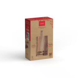 En bois d’acacia FSC. 2 couteaux à fromage aimantés avec emplacement de rangement dédié. Dimensions : 38 x 20 x 1,5 cm.