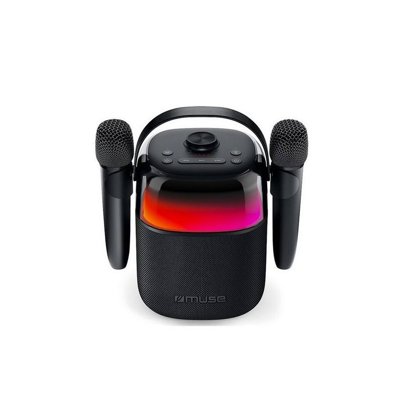 Enceinte Bluetooth spécial Karaoké. Puissance 30W. Port USB permettant la lecture d'un MP3. Conception IPX5. Mode atténuation des paroles. 3 modes sonores: Normal - Basse - Aigu. Effets de lumière (6 modes d'éclairage).
