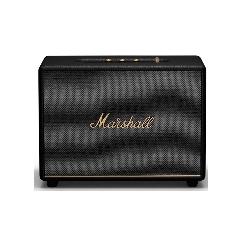 Boîtier robuste avec une grille en tissu et des détails métalliques.