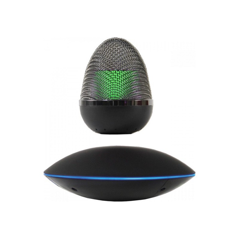 Enceinte en lévitation électromagnétique au-dessus de la base, tout en diffusant de la musique.
