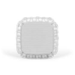 Flotte dans l’eau. Bluetooth 5.0 et fonction TWS. Puissance 5 W. Batterie li-ion 3.7V rechargeable 1200 mAh, autonomie 5 h en écoute. Waterproof IPX6. Résistant aux chocs extrêmes. Port USB type C, entrée auxiliaire, emplacement carte TF. 3 modes de lumière RGB à 360degré(s). Lumière RGB en 7 couleurs. Portée jusqu’à 10 m. Temps de charge : 4h. Câble de chargement USB inclus.