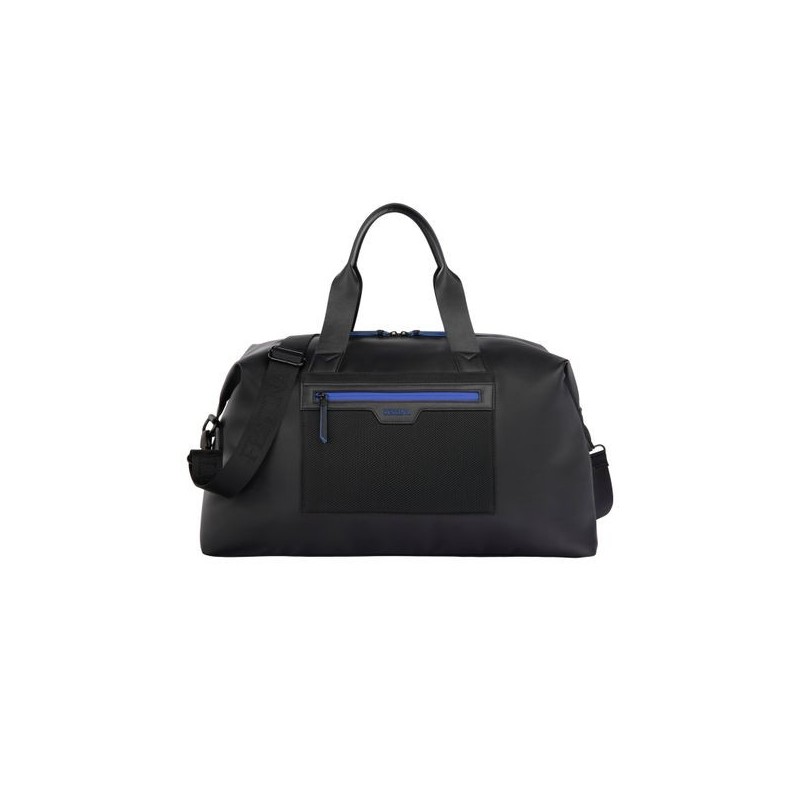 Un compartiment principal spacieux. Une poche frontale zippée pour un accès rapide. Une poche intérieure zippée pour les objets de valeur. Un choix élégant et fonctionnel, parfait pour les voyages courts ou un usage quotidien. Matière principale : Polyuréthane (cuir végan). Détails : Accents bleus vifs (zip, tirettes, logo). Style : Moderne, sportif et raffiné. Compartiments : 3 (1 principal, 1 extérieur, 1 intérieur). Fermeture : Zips robustes. Dimensions : 520 x 250 x 330 mm.