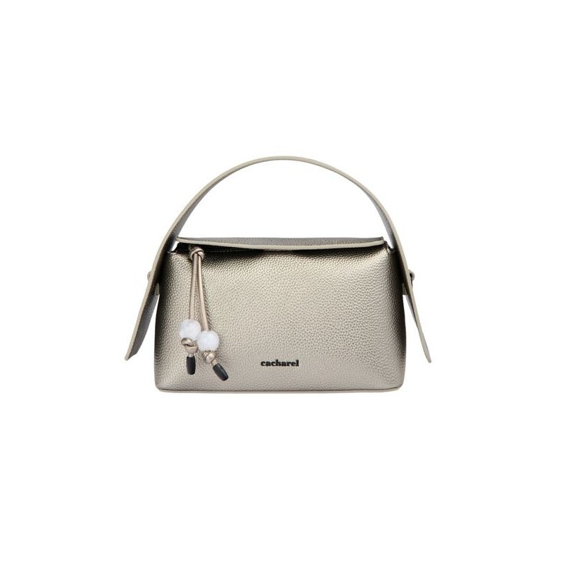 Type : Sac à main design – contemporain et structuré. Matière principale : Polyuréthane (cuir végétal métallisé). Finition : Effet cuir grainé mat, matière métallisée (bronze). Poignée au design original et inattendu. Détails en métal noir mat pour une touche moderne. Logo “Cacharel” iconique à l’avant. Dimensions : 210 x 85 x 130 mm.