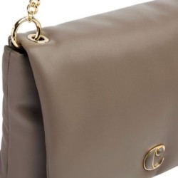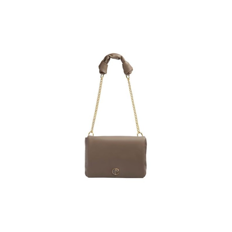 Type : Sac bandoulière ou d’épaule – grand format, spacieux. Matière principale : Polyuréthane (cuir végétal mat). Finition : Effet matelassé, toucher doux. Couleur : Taupe (désignée ici comme Medium Grey). Finitions dorées chaleureuses. Plaque logo “C” dorée avec finition ABS taupe. Bandoulière signature avec nœud décoratif et chaîne métal. Logo “Cacharel” discret embossé. Dimensions : 280 x 80 x 200 mm.