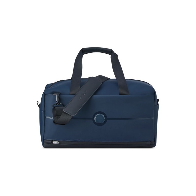 1 poche avant zippée - ouverture Zip Securitech - Déperlant - 1 grand compartiment en dessous zippé pour chaussures et linge sale - 2 poches plates latérales - bandoulière amovible - 2 grands anses de portage - compatible système trolley - Dimensions: 25 x 45 x 24 cm Volume: 26 L. Matières: PU recyclé -