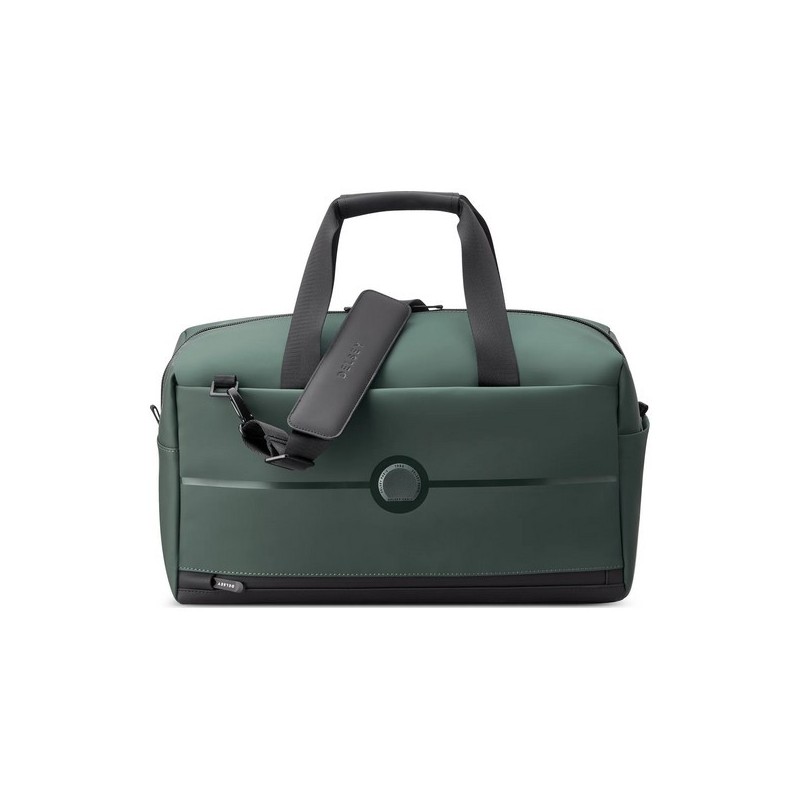 1 poche avant zippée - ouverture Zip Securitech - Déperlant - 1 grand compartiment en dessous zippé pour chaussures et linge sale - 2 poches plates latérales - bandoulière amovible - 2 grands anses de portage - compatible système trolley - Dimensions: 25 x 45 x 24 cm Volume: 26 L. Matières: PU recyclé