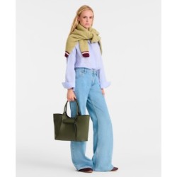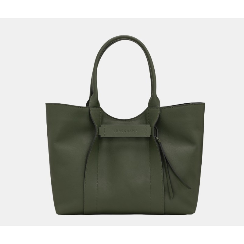 Grand sac porté épaule structuré. Matière extérieure : cuir de veau. Doublure : polyamide et polyester recyclés avec motif jacquard Longchamp. Fermeture : bouton?pression magnétique. Accessoires métalliques : couleur argenté foncé. Poches intérieures : 2 poches plates. 1 poche zippée. Dimensions : 33 × 26 × 11cm.