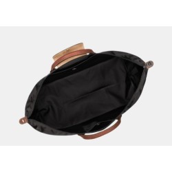 Volume : environ 40–42 L Matière extérieure : toile polyamide (nylon) avec enduction intérieure Garniture : cuir de vachette (cuir de Russie) Fermeture : zippée + bouton-pression Intérieur : 1 poche plaquée Poignées : portées main Format : souple, pliable Usage : voyage, week-end, bagage cabine (selon compagnie) Dimensions : 55 x 40 x 23 cm.