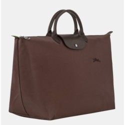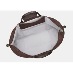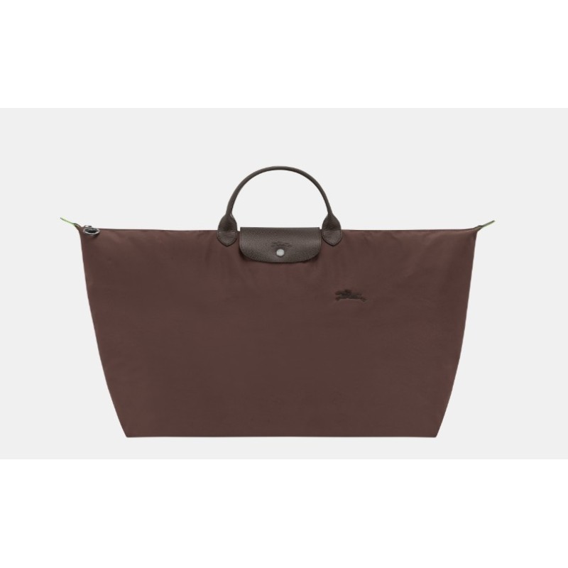 Volume : 42 L Matière extérieure : toile polyamide avec au moins 70 % de fibres recyclées Garniture : cuir de vachette (cuir de Russie) Fermeture : zip + bouton-pression Intérieur : 1 poche plate Extérieur : 1 poche zippée Poignées : portées main (hauteur 9 cm) Accessoires métalliques : finition argentée Doublure : non doublé, enduction nylon Format : souple, pliable Usage : voyage, week-end, bagage cabine (selon compagnie) Dimensions : 55 x 40 x 23 cm