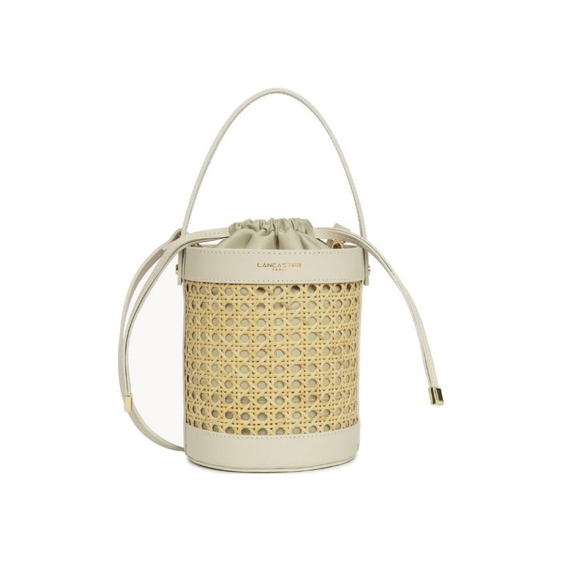 Ce sac seau est confectionné de cannage rotin naturel garni cuir de vachette.