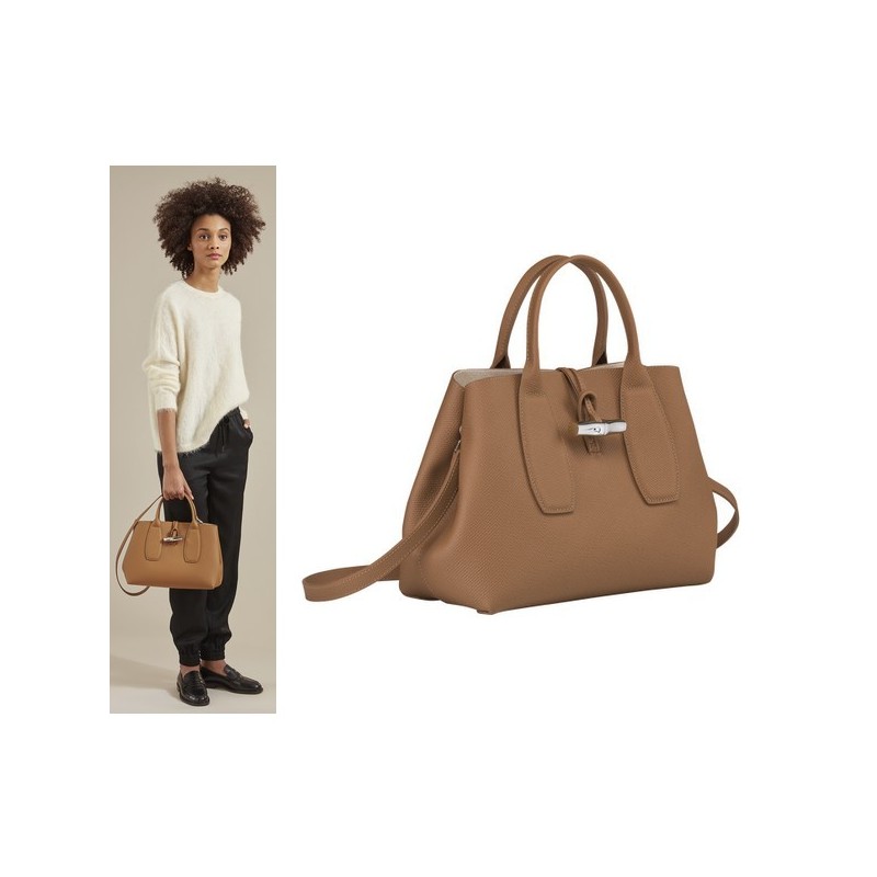 Ce sac comprend une poche zippée intérieure et une poche plaquée intérieure, un fermoir bambou et une attache clé. Matière: cuir de vachette. Accessoire métallique: argenté. Doublure: refente de cuir de vachette velours. Dimensions: 35 x 23.5 x 13.5 cm.