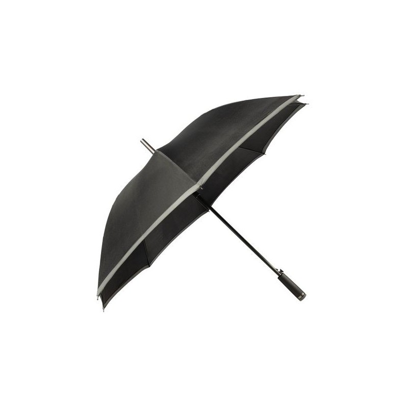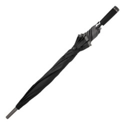 Grand format, très couvrant, allure moderne et élégante. Manche finition gomme rehaussé d'une bague de couleur contrastée et d'un embout dentelé. Toile polyester double ton avec liseré de couleur. Ouverture et fermeture automatiques Pochette à fermeture éclair. Dia. 119 / L. 91 cm.