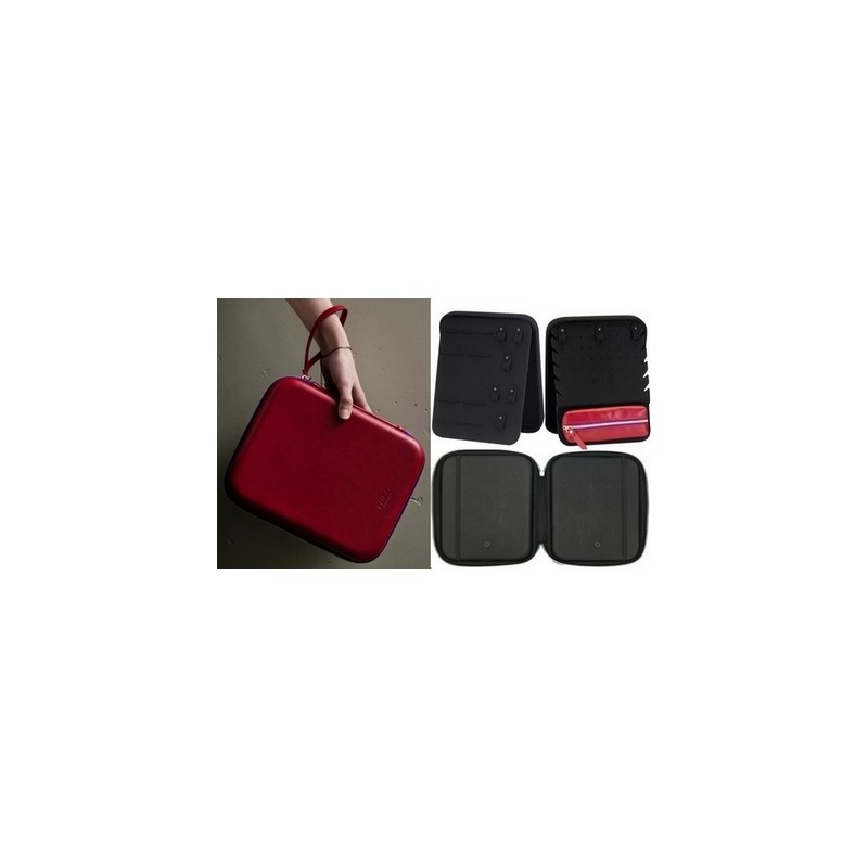 Deux clips s'insérent sous chacune des deux housses intérieures pour le transport se transforment aisément en présentoirs à bijoux / montres.