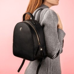Cuir végétalien grainé (polyuréthane). Tirette de fermeture à glissière. Doublure polyester. Poche pour smartphone. Dim: 23 x 11 x 26 cm.