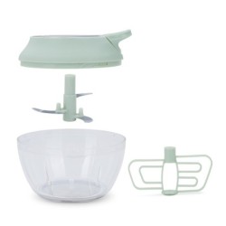Capacité 450 ml. 3 lames en acier inoxydable. Couvercle avec mécanisme de traction par cordon. Système de verrouillage sécurisé. Base antidérapante. Bol compatible lave-vaisselle. Accessoire inclus : pâle pour battre.