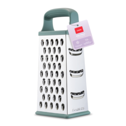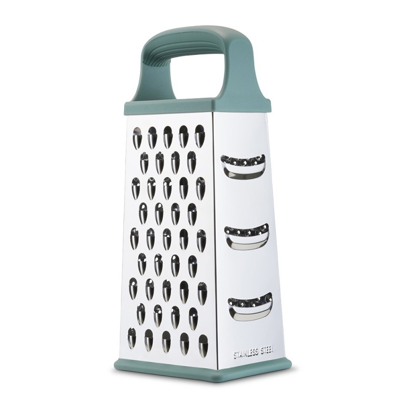 4 face en acier inoxydable pour râper finement, moyennement ou plus largement. Poignée ergonomique avec intérieur soft touch. Socle antidérapant.