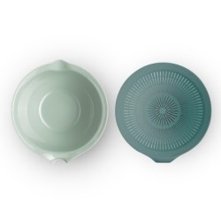 2 en 1 : bol mélangeur et passoire emboitables. Capacité individuelle du bol et de la passoire : 3 L. Poignées ergonomiques. Panier à égoutter en maille fine. Bol avec bec verseur et base antidérapante. Compatible lave-vaisselle.