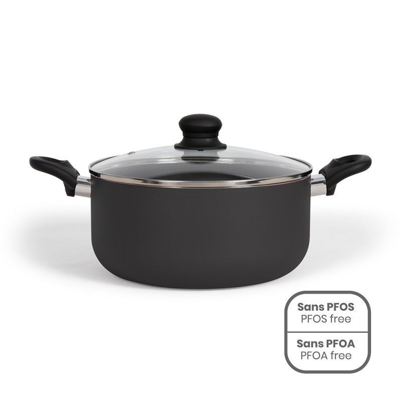 Revêtement intérieur antiadhésif sans PFOA ni PFOS*. Poignées en revêtement silicone soft touch résistant à la chaleur. Couvercle en verre trempé avec aérateur vapeur. Compatible tous feux dont induction. 24 cm de diamètre - 2,5 mm d'épaisseur.