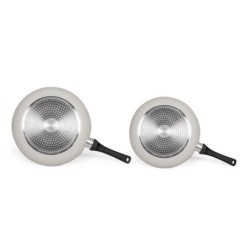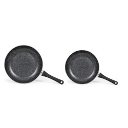 Revêtement intérieur antiadhésif finition aspect pierre. Diamètre 24 et 28 cm, 2,5 mm d'épaisseur. Manche en revêtement silicone soft touch résistant à la chaleur. Compatible tous feux dont induction. Cuisson sans ajout de matière grasse.