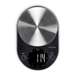 Capacité 5 kg, précision au gramme près. Choix de l’unité de mesure : gramme (g), livre (lb), once (oz). Fonction Tare. Ecran LCD rétroéclairé. Touches sensitives. Arrêt automatique. 3 piles AAA (LR3) incluses.