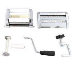 9 positions de 6 à 1 mm pour fettucine, spaghetti, lasagne et ravioli. Accessoire de découpe pâtes, 1 manivelle, 1 moule à ravioli : bande de 2 raviolis dans la largeur. Fixation au plan de travail. Qualité professionnelle.