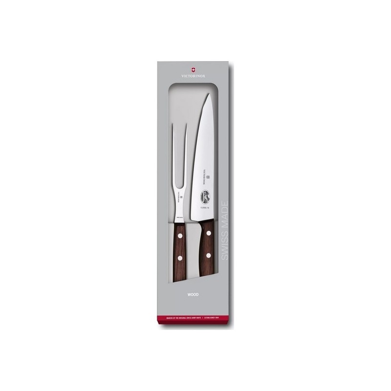 Coffret à découper, 2 pièces, manche érable modifié, comprenant : 1 couteau à découper 19 cm. 1 fourchette à viande et rôti 15 cm.