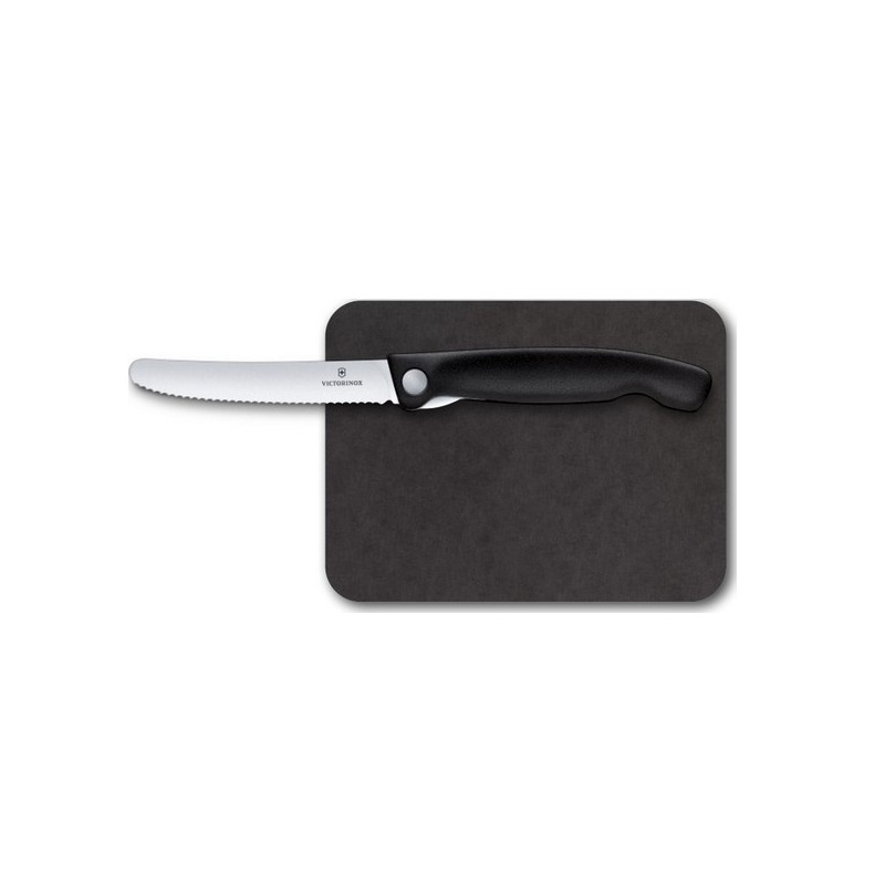 Une planche à découper compacte et Un couteau d’office pliant avec laquelle réaliser tous vos projets culinaires. Corbeille de fruits ou panier de pique-nique, soyez-en assuré, plus rien ne vous résistera, et cela, sans rien sacrifier au style ! Set 2 pièces comprenant : - Couteau d'office pliant Swiss Classic. - Planche à découper: 16,8 cm x 12,2 cm.