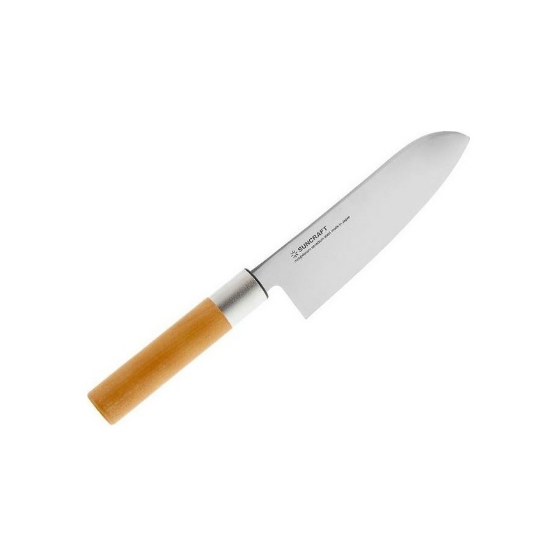 Lame 18 cm. Modèle tous usages convenant spécialement pour les légumes. Les couteaux de la série Senzo Wa sont équipés de lame en acier 1K6 avec une dureté Rockwell de 58 +/- 1. Le manche est en bois de magnolia et la mitre en acier inoxydable. Ce couteau ne va pas au lave-vaisselle.