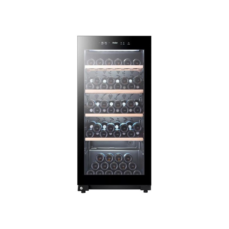 Volume : 210 litres. Thermostat réglable (5 à 20degré(s)C). 4 clayettes en bois, froid brassé, filtre carbone. Porte en verre traitée anti-UV, affichage LED. Niveau sonore 38 dB, système anti-vibration, 2 pieds avant ajustables et 2 roulettes arrières. Dimensions : 126,5 x 59,5 x 63,9 cm. Livrée sans bouteilles. Livraison RDC/Pas de porte.