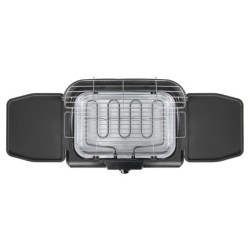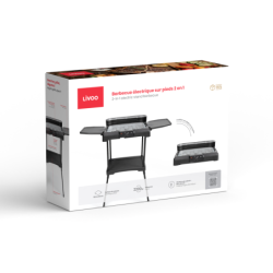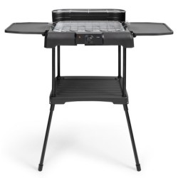 2 en 1 : sur table et sur pieds. Surface de cuisson avec grille en acier chromé de 39,5 x 24 cm. Paravent avec grille de maintien au chaud de 45,5 x 10 cm. Choix entre 2 hauteurs de cuisson allant jusqu’à 81,5 cm. Puissance 2200 W. Thermostat ajustable. 2 tablettes latérales de 23,5 x 27,5 cm chacune. Piètement avec tablette de rangement de 45 x 33 cm. Eléments amovibles pour un nettoyage facile. Etanchéité IPX4 : pour une utilisation en intérieur ou en extérieur.