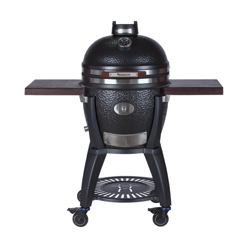 Énergie : charbon de bois. Chariot 4 roues. Matériau cuve / couvercle : céramique haute qualité. Grilles : acier inoxydable. 8 à 12 personnes. Chariot : acier avec roulettes. Diamètre de cuisson : environ 44 cm. Capacité : environ 8 à 12 personnes Thermomètre intégré à aiguille jusqu'à 450 degrés C. Cuisson : directe et indirecte. Équipements : 2 tablettes latérales rabattables, système de ventilation réglable, grille de cuisson 44 cm. Dimensions : environ 120 × 71 × 120 cm.