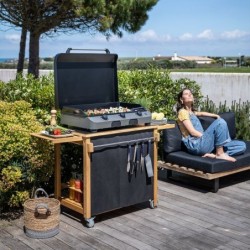 4 roues dont 2 directionnelles permettent un déplacement aisé de votre cuisine d'extérieur.
