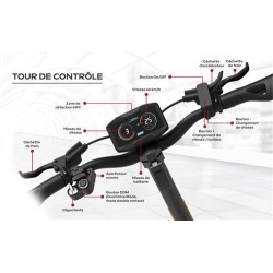 Moteurs : double moteur 2 × 2000 W. Vitesse maximale : 25 km/h. Batterie : 52 V / 23,4 Ah. Autonomie : jusqu’à 100 km. Temps de charge : environ 15 heures. Roues : 10 pouces tubeless tout-terrain. Suspensions : avant et arrière. Freinage : disques hydrauliques avant et arrière. Étanchéité : indice IPX5. Charge maximale : 120 kg. Inclinaison maximale : jusqu’à 20 degrés. Sécurité : clé NFC intégrée pour le démarrage.