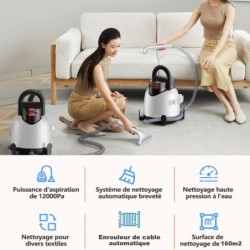 Puissance: 400 Watts. Nettoie, détache et ravive: pulvérisez, frottez, aspirez. Multisurface: canapés, des tapis, sièges et moquettes de voitures... Contenance du réservoir à eau usée: 1400 ml. Contenance du réservoir à eau propre: 1600 ml. Dimensions: 46 x 30 cm.