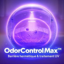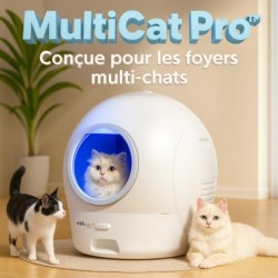 Tiroir a litière, rateau et plaque anti odeurs amovibles et lavables a l eau. Système de stérilisation par lumière UV après chaque nettoyage. Limite les mauvaises odeurs Durée de stérilisation réglable via l application. Capteurs intelligents et porte de sécurité. Nettoyage interrompu automatiquement si le chat entre ou sort. Protection assurée pendant tout le cycle. Suivi de l activité du chat et historique d utilisation. Dimensions : 59 x 60 x 60 cm.