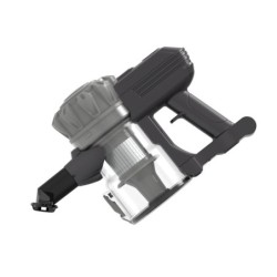 Sols, meubles et hauteurs. Puissance du moteur 150 W. Puissance de la batterie 22,2 V, puissance d’aspiration 10 kPa, 100 airs watts. Batterie lithium 2200 mAh avec autonomie de 40 min et rechargeable en 5 heures. Tube télescopique. 2 vitesses. Système d’aspiration cyclonique avec filtre HEPA. Décibels 76 dB. Bac à poussière amovible de 0,55 L. Affichage du niveau de batterie. Accessoires : 1 brosse 2en1 pour sols durs et moquettes, 1 chargeur, 1 support de fixation mural, 1 embout brosse pour tissus et canapés et 1 embout 2en1 brosse suceur plat inclus.