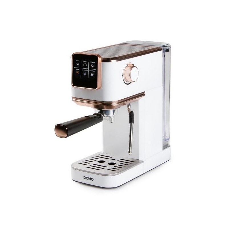 Performances professionnelles : La machine à espresso est équipée d’une pompe italienne ULKA de 20 bars et d’un système de chauffe thermoblock, garantissant un café au goût intense, une crème parfaite, et une montée en température rapide et précise.Polyvalence des préparations : Elle permet de réaliser une large gamme de boissons chaudes et froides (espresso, cappuccino, latte macchiato, café glacé) grâce à une buse vapeur et une compatibilité avec le café moulu, les dosettes et les capsules ESE.Utilisation intuitive : L’écran tactile en couleurs facilite la navigation entre les fonctions, offrant une expérience utilisateur simple et moderne. Son esthétique blanche et or rosé apporte une touche de luxe à la cuisine tout en restant fonctionnelle. Capacité de 1,1 L, puissance de 1350 W, accessoires inclus (cuillère, filtre permanent, tasseur), et format compact adapté aux petits espaces (41,3 x 15 x 32,7 cm).