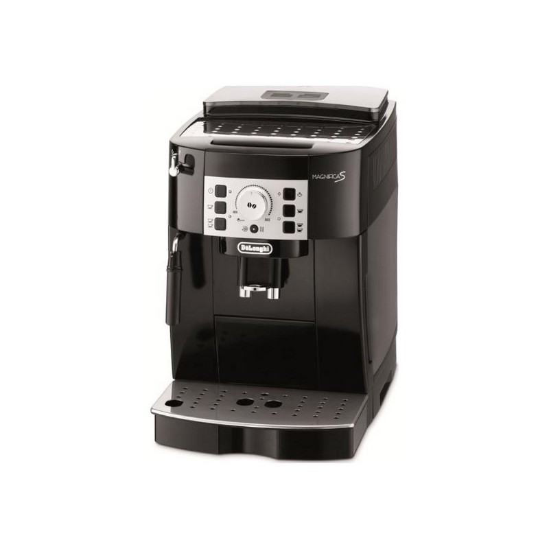 Compact avec broyeur intégré. Puissance 1450W, pression 15 bar. Réservoir 1,8L, niveau d'eau apparent. Capacité bac à grains 250 g. Compatibilité café moulu ou grains. Finesse de mouture réglable (13 niveaux). Buse vapeur, arrêt automatique.