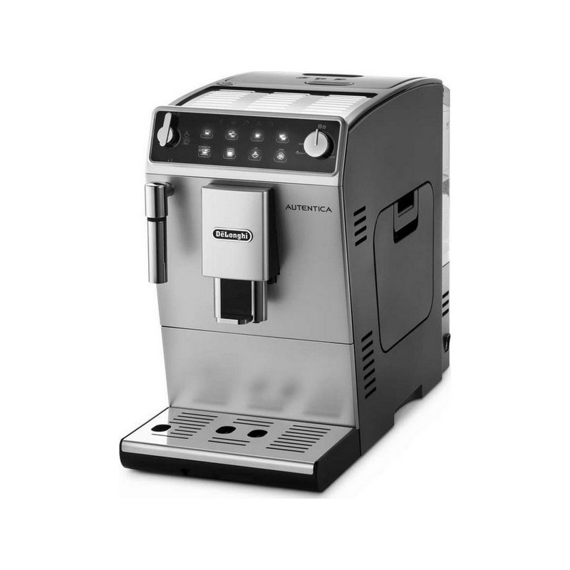 Ultra compact (19,5 cm de large) avec broyeur à grains intégré. Broyeur intégré avec finesse de mouture réglable (13 niveaux). Couvercle de saveur pour le réservoir à grains. Café en grains ou moulu, réservoir à grains 200g. Touche café long (infusion plus lente et basse pression). Touche Doppio+ (plus de café, pré-infusion spécifique, infusion maximale pour une extraction maximale des arômes). Buse vapeur réglable pour obtenir une mousse de lait plus ou moins dense pour préparer un onctueux cappuccino. Préparation de 2 cafés en même temps, infuseur amovible à capacité variable (7 à 14g). Réservoir d'eau amovible 1,4 litres, niveau apparent. Arrêt automatique. Finition: argent/noir. Dimensions : L19,5 x P47 x H34 cm.