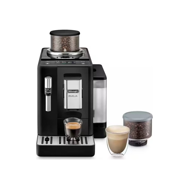 Puissance: 1450 Watts. Pression de la pompe : 19 bar. Capacité du bac à grains: 250 g. Contenance du réservoir à eau: 1.4 l. Hauteur max de la tasse: 140 mm. Système pour lait. Buse pour les boissons lactées. Fonctions: boissons froides à base de café, boissons chaudes à base de café, réglage de l'intensité, écran tactile 3,5 pouces... Vendu sans les verres.