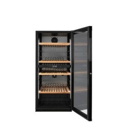 Cave à vin de vieillissement connectée (wifi) avec contrôle à distance double zone 138 bouteilles. 2 clayette sapelli tête bêche + 2 clayettes sapelli horizontale. Régulation électronique, écran LCD avec gestion de la cave sur le panneau de contrôle et via une application. Fonction hiver, système anti vibration, filtre à charbon Porte vitrée et éclairage LED latéral, 37 dB, classe F. Dimensions : 59.5 x 125 x 69.6 cm. Cave livrée sans bouteilles. L'abus d'alcool est dangereux pour la santé, à consommer avec modération. Livraison RDC / Pas de porte.