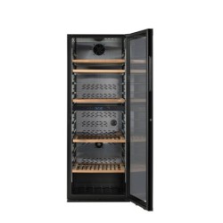 Cave à vin de vieillissement connectée (wifi) avec contrôle à distance double zone 193 bouteilles. 3 clayette sapelli tête bêche + 2 clayettes sapelli horizontale, régulation électronique, écran LCD avec gestion de la cave sur le panneau de contrôle et via une application. Fonction hiver, système anti-vibration, filtre à charbon, porte vitrée et éclairage LED latéral, 37 dB, classe F. Dimensions : 59.5 x 158.5 x 69.6 cm. Cave livrée sans bouteilles. L'abus d'alcool est dangereux pour la santé, à consommer avec modération. Livraison RDC / Pas de porte.