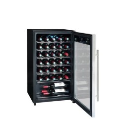 La Sommelière clayette fil d'acier, éclairage intérieur LED plafonnier. Un thermostat électronique et affichage digital de la température intégrés à la porte. Un panneau de contrôle intégré à la porte. Système anti vibration. Dimensions : 84 x 48 x 43 cm. 37dB, et porte inox, Classe énergétique G. Cave livrée sans bouteilles. L'abus d'alcool est dangereux pour la santé, à consommer avec modération. Livraison RDC / Pas de porte.