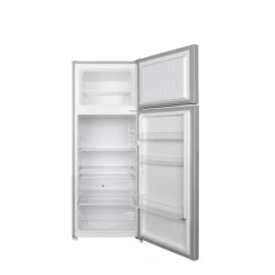 Réfrigérateur Double porte 211L (réfrigérateur 170 L + congélateur 41 L). Portes réversibles & poignées intégrées. Congélateur. 3 clayettes verre. Froid : statique (réfrigérateur et congélateur). Dégivrage : automatique côté réfrigérateur, manuel côté congélateur. Autonomie congélateur en cas de coupure : 13 h. Capacité de congélation : 2 kg/24h. Classe E. Éclairage intérieur (LED) dans le réfrigérateur. Dimensions : 142.8 cm × 54 cm × 55.1 cm.