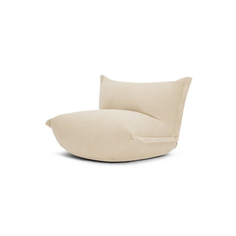 Tissu extérieur: Sherpa. Rembourrage siège : Flocons de mousse / Fibres Polyester. Rembourrage dos : Flocons de mousse / Polystyrène expansé. Dossier réglable en desserrant ou en serrant les sangles des boutons au dos du fauteuil. Dimensions: 100 x 110 x 72 cm.