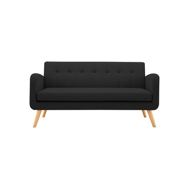 Un canapé aux pieds scandinaves qui s'adaptera à tous les styles de salons. Il se compose d'un cadre en bois d'eucalyptus, de pieds en bois d'hévéa et d'un tissu en polyester. Poids maxi supporté : 300 kg. Déhoussable. Dimensions globales (L,P,H) : 163 x 77 x 83 cm .